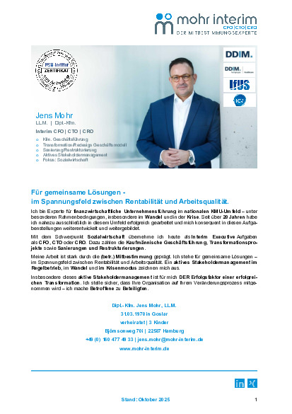 mohr interim CFO I CTO I CRO Mitbestimmungsexperte