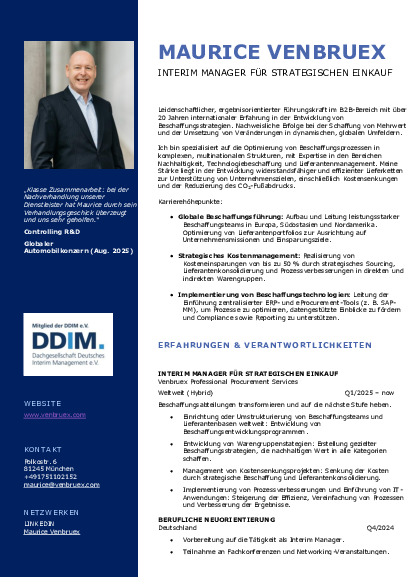 Interim CPO | Interim Leiter Einkauf | Strategischer Einkauf & Transformation | Warengruppenstrategien – Kosten senken - Prozesse optimieren - Teams stärken.