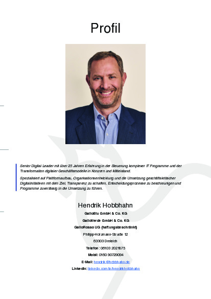 Die GalloRosso UG vermittelt Fach- und Führungskräfte sowie erfahrene Interimmanagerinnen und Interimmanager, die Unternehmen bei ihren aktuellen Herausforderungen unterstützen. Sie steht für eine persönliche, transparente und qualitätsorientierte Beratung, die Menschen, Aufgaben und Organisationen so zusammenbringt, dass langfristig erfolgreiche Verbindungen entstehen.