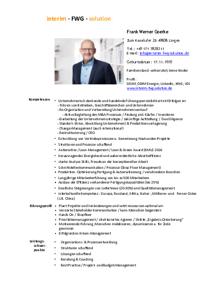 Geschäftsführer eines Unternehmens im Bereich der Oberflächenveredelung. Leitung der strategischen Geschäftsentwicklung, des Anlagen-Engineerings und Lizenzprojekte.