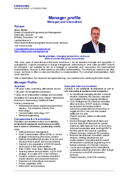 STEFAN ZEISS MANAGEMENT + CONSULTING , Bad Hersfeld, Germany (und Lkr. Starnberg)