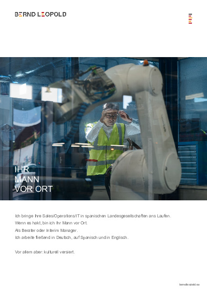Ich bringe Ihre Sales, IT und Operations in spanischen Landesgesellschaften ans Laufen – mit tiefem Verständnis für die Anforderungen vor Ort und in der Zentrale.