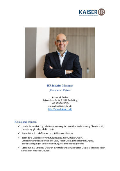 - HR M&A (Restrukturierung, Betriebsübergang, Betriebsschließung)
