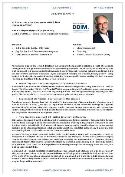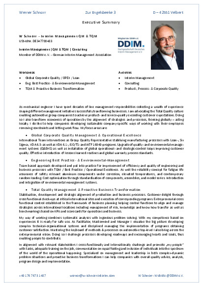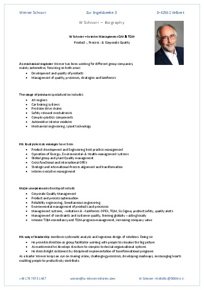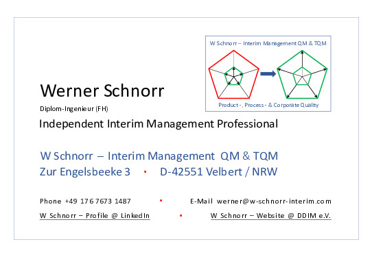 W Schnorr - Interim Management QM & TQM, Velbert / NRW