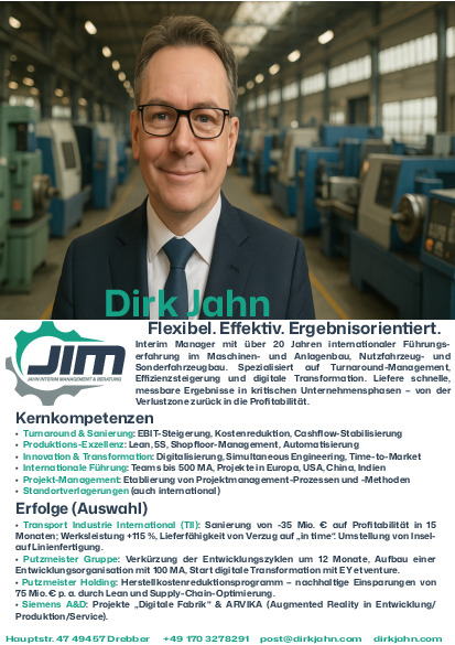 Interim Executive | CEO, CTO, COO, CRO |, Projekt Manager, Maschinenbau-Experte für Effizienz, Innovation & Profitabilität | Flexibel. Effektiv. Ergebnisorientiert.